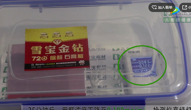雪寶金鉆720度除醛石膏板-分解甲醛凈化空氣測試...