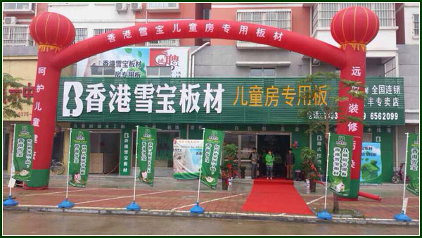 2014年9月13日雪寶板材(河南寶豐店)盛大開業,開業期間主辦方舉行了開業活動,天氣雖下有細雨,但是現場開業氣氛不減,活躍熱烈。
