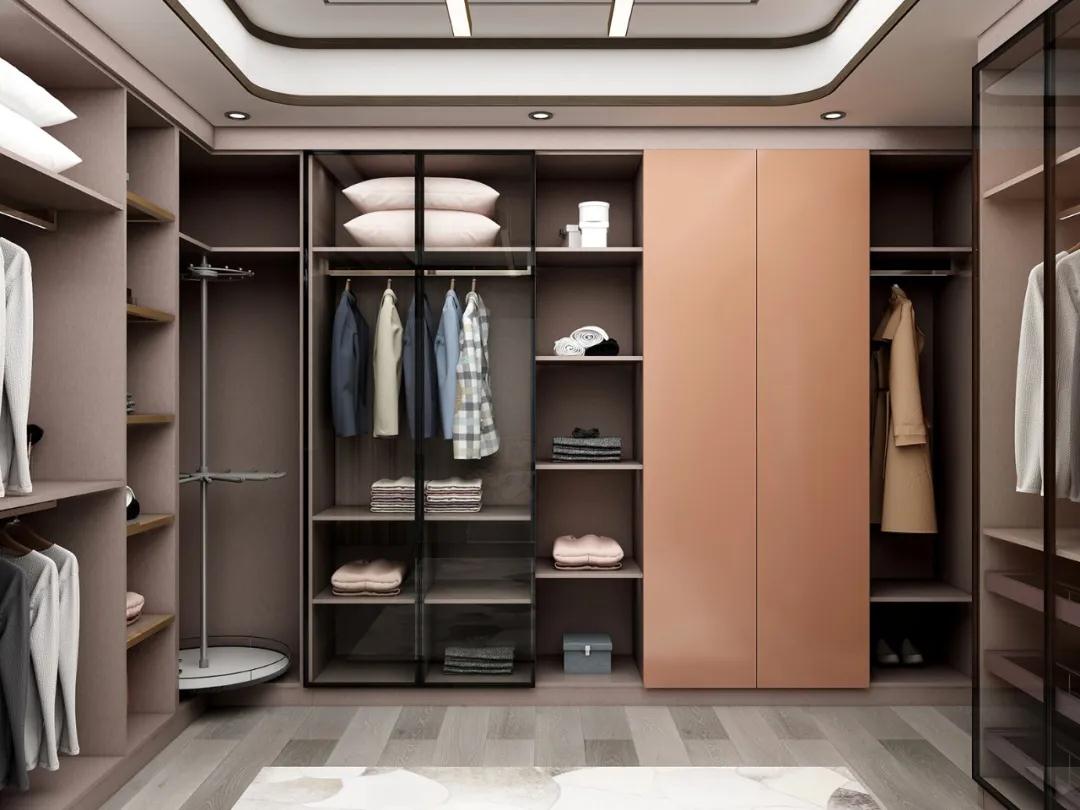 展示區:展示區屬于衣柜的畫龍點金之處,可展示主人穿衣和生活品味。展示區可以是開放式的,也能是玻璃透明式的,開放式區域可以儲放收藏品或鑰匙錢包等,便于伸手取物。