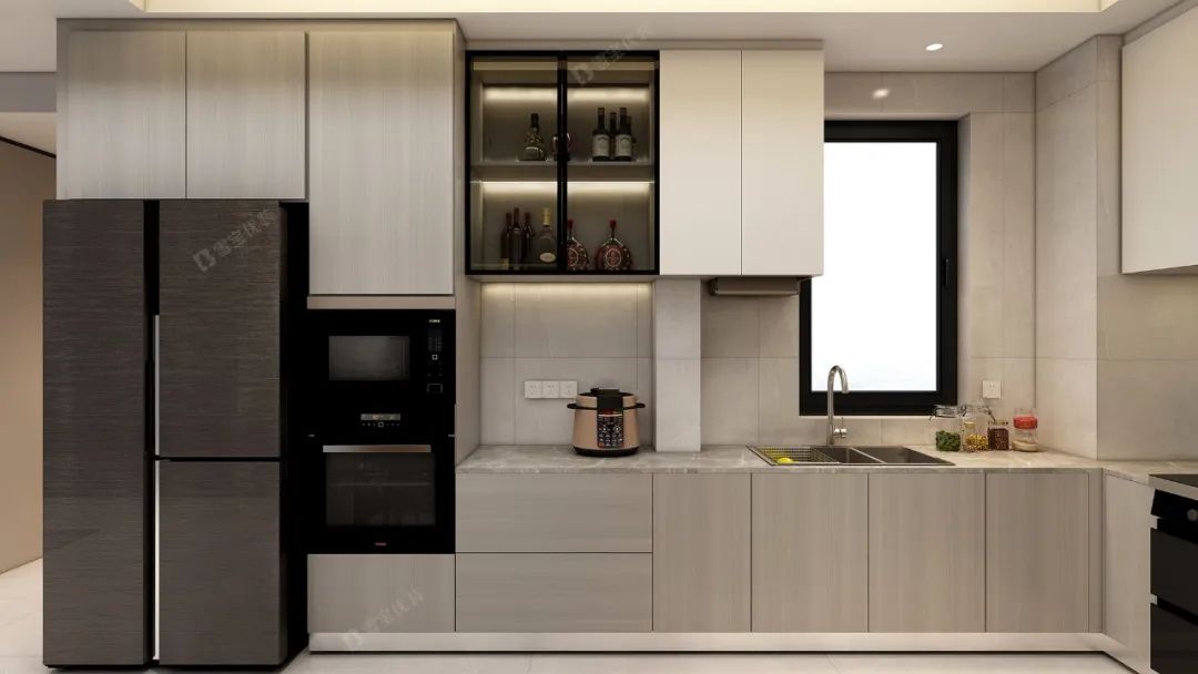 優(yōu)質(zhì)環(huán)保的材質(zhì)、柔和溫馨的燈光效果搭配簡單純粹的色彩,將廚房打造得精致美好更舒適整潔。