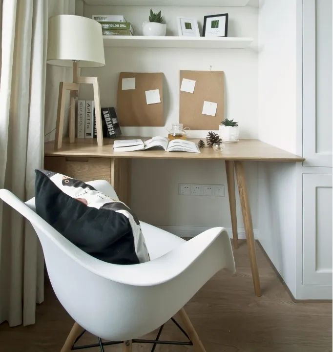 小戶型的房子,沒有獨立的書房,也可以在床頭的位置擺放一張書桌,這樣也是非常方便的,可以放床頭柜用,也可以放書桌來使用。