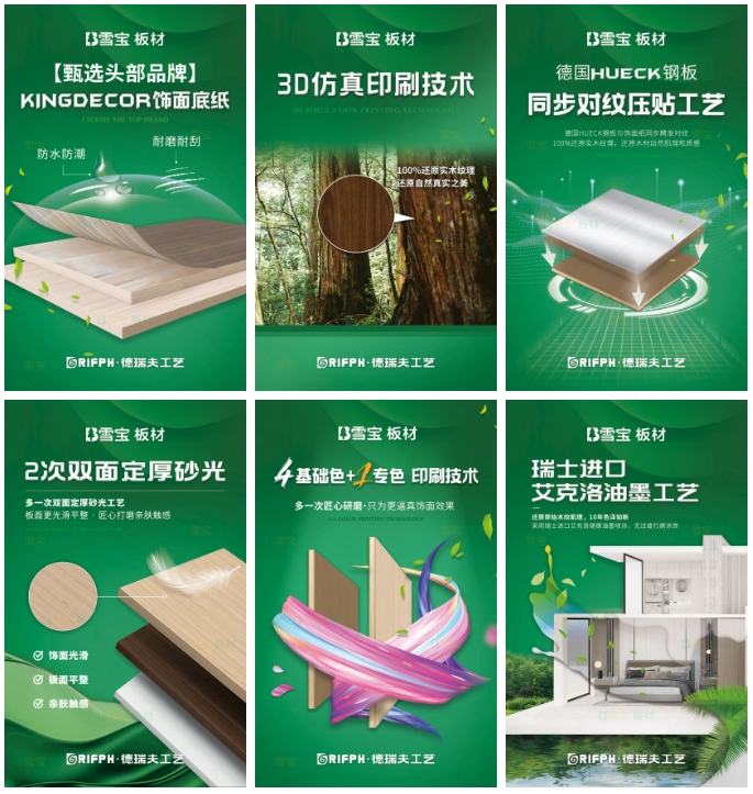 同時嚴選優質的底紙和油墨,且融合自研首創且品牌獨有的雪寶DRIFPH德瑞夫6大領先工藝,讓我們的板材飾面效果100%還原實木紋理,家裝整體更加有質感。無論是哪個角度“望聞問切”都可以做到非常出色,真正做到了讓消費者放心選擇。