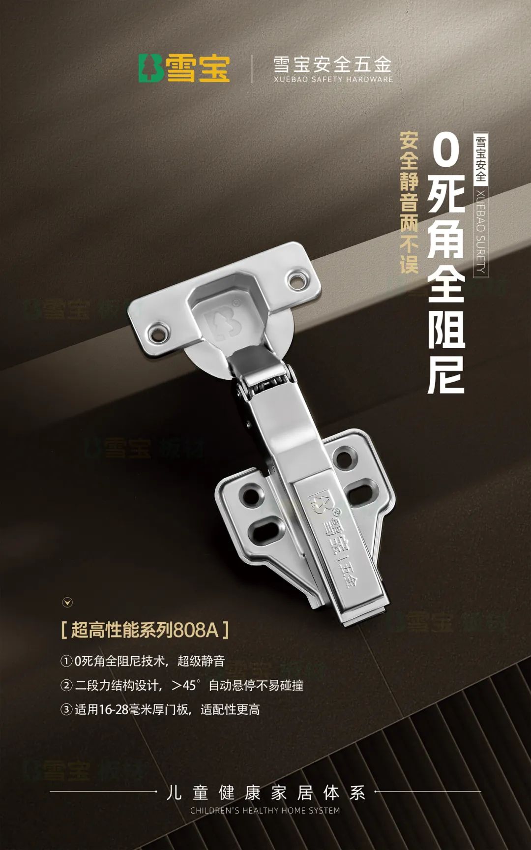 同時,在基礎五金柜門鉸鏈、門板拉手等產品設計上,安全防夾防撞、靜音緩沖自懸停等功能加持,以及圓弧角、圓弧造型的設計,無不凸顯我們對兒童、老人健康細致入微的安全守護。