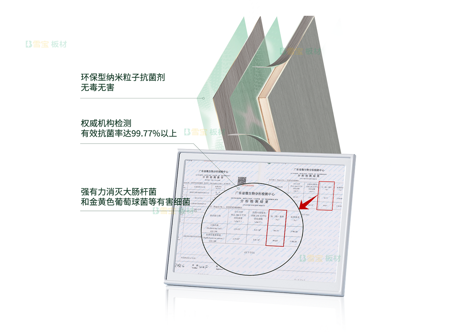 這個時候,有著抗菌、防霉雙重功能的雪寶抗菌防霉板方能大顯本領了,其優異的抗菌防霉表現讓板材到空間的環保躍級,實現24小時持續守護,能夠貼心呵護家人的健康生活。