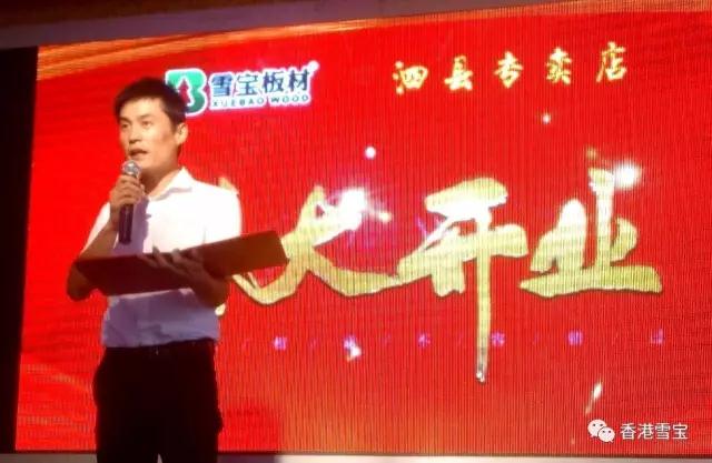 ▲雪寶板材安徽泗縣專賣店戚總為開業典禮致辭