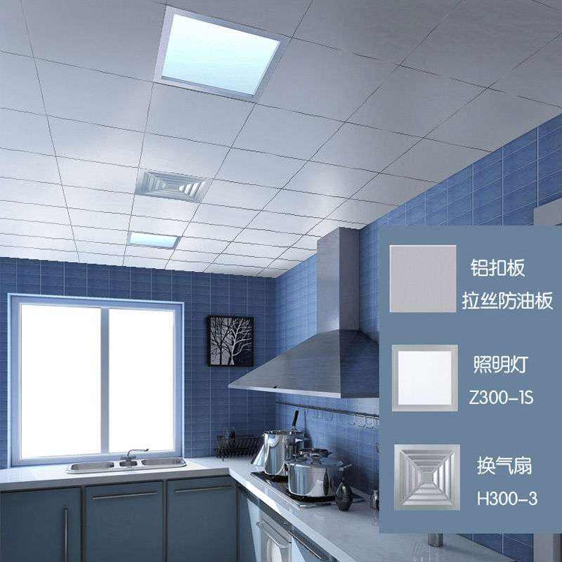 以輕鋼龍骨做安裝骨架,再把鋁扣板一塊一塊扣上去,并可以在其中任意位置添加排氣扇、燈、浴霸等組件,模塊化的組合形式十分靈活好用,從開始流行至今,在廚衛(wèi)吊頂界屹立不倒。