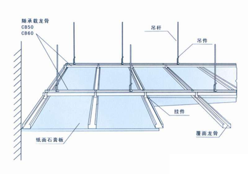 ▲ 石膏板吊頂構(gòu)造示意圖