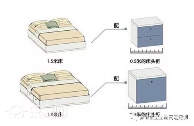 要根據床的大小而定,1500mm的床放500mm左右的床頭柜,1800mm的床需要放600mm寬以上,高度略高于床面就是最合適的。